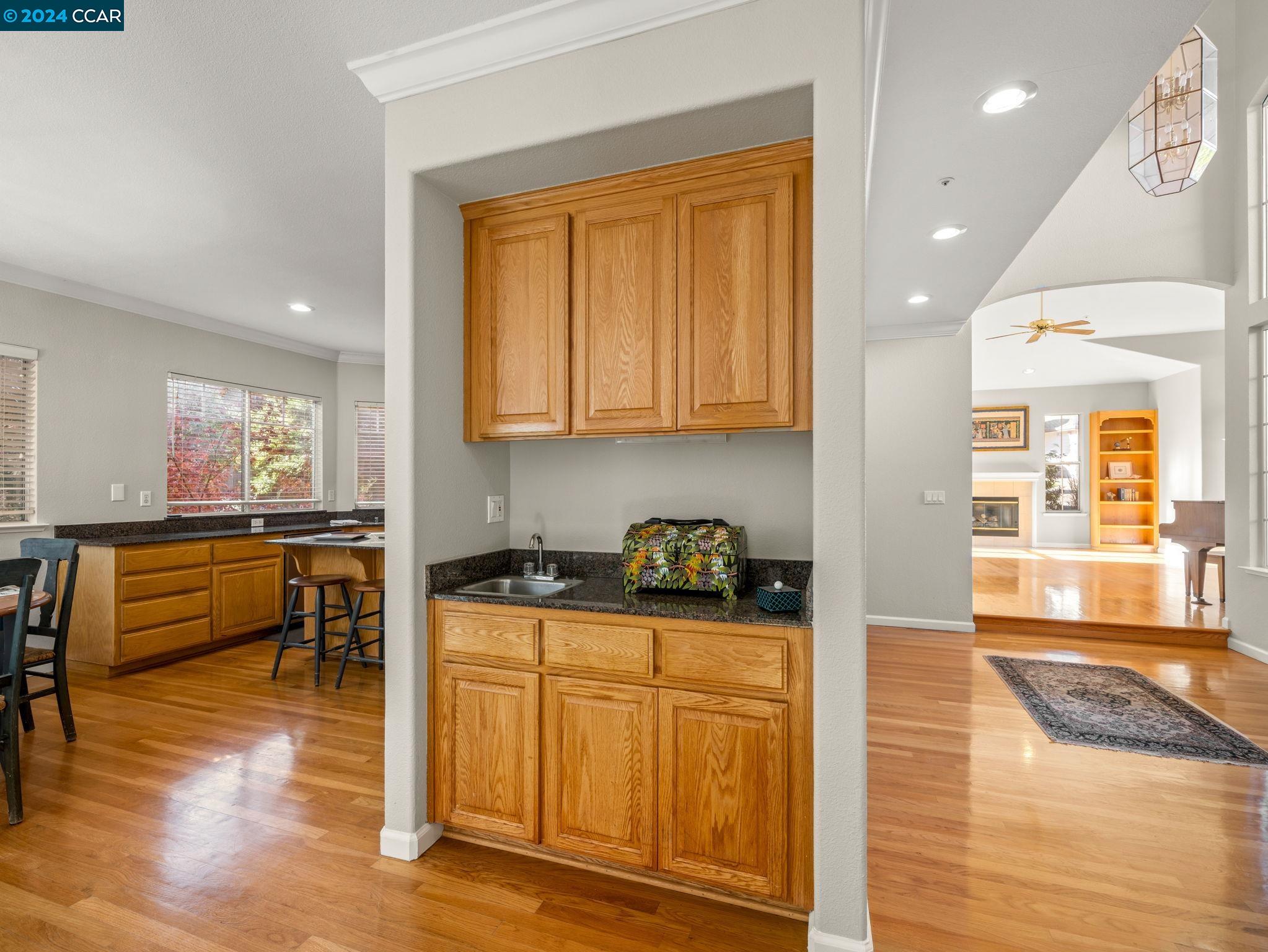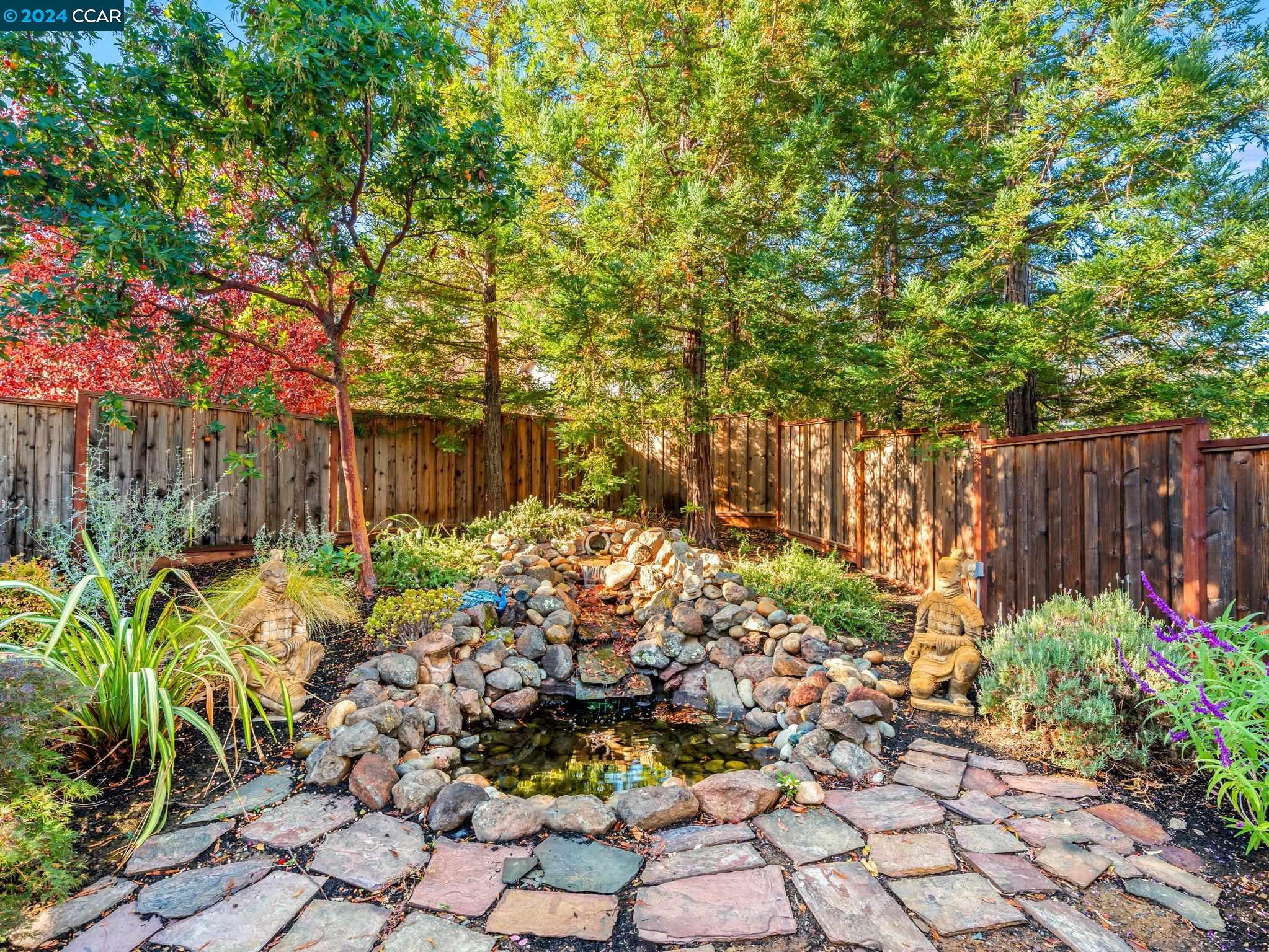 Amazing/Rare opportunity to own a custom built architectural home nestled in Clayton's secluded Oakwood Estates. Step into the dramatic foyer feat a single door flanked by sun drenched side-light & transom windows w/ voluminous ceiling & gleaming hw floors that extend into the elegant living & formal dining rooms. The hardwood floors seamlessly flow into the gourmet kitchen boasting slab granite counters, stainless steel appliances, pantry & casual dining area overlooking the spacious family room with a cozy gas fireplace & sunny sliding glass door leading to deck & paver patio great for dining alfresco. Meandering paths lead to lawn area, pergola covered patio & gently cascading waterfall feature w/ pond. Meticulously maintained drought tolerant landscape feat towering palms, redwoods, vibrant ornamentals & flowers, extensive use of pavers & stone hardscape set the stage for tranquility & serenity w/ an adjacent seasonal creek adding to the natural beauty of this incredible setting. Thoughtfully designed w/ convenience in mind featuring a downstairs bed/bath, upper level laundry room, oversized bedrooms & bonus room, + an expansive unfinished under home storage area! This property presents an incredible opportunity for those looking to customize a home to their unique taste.